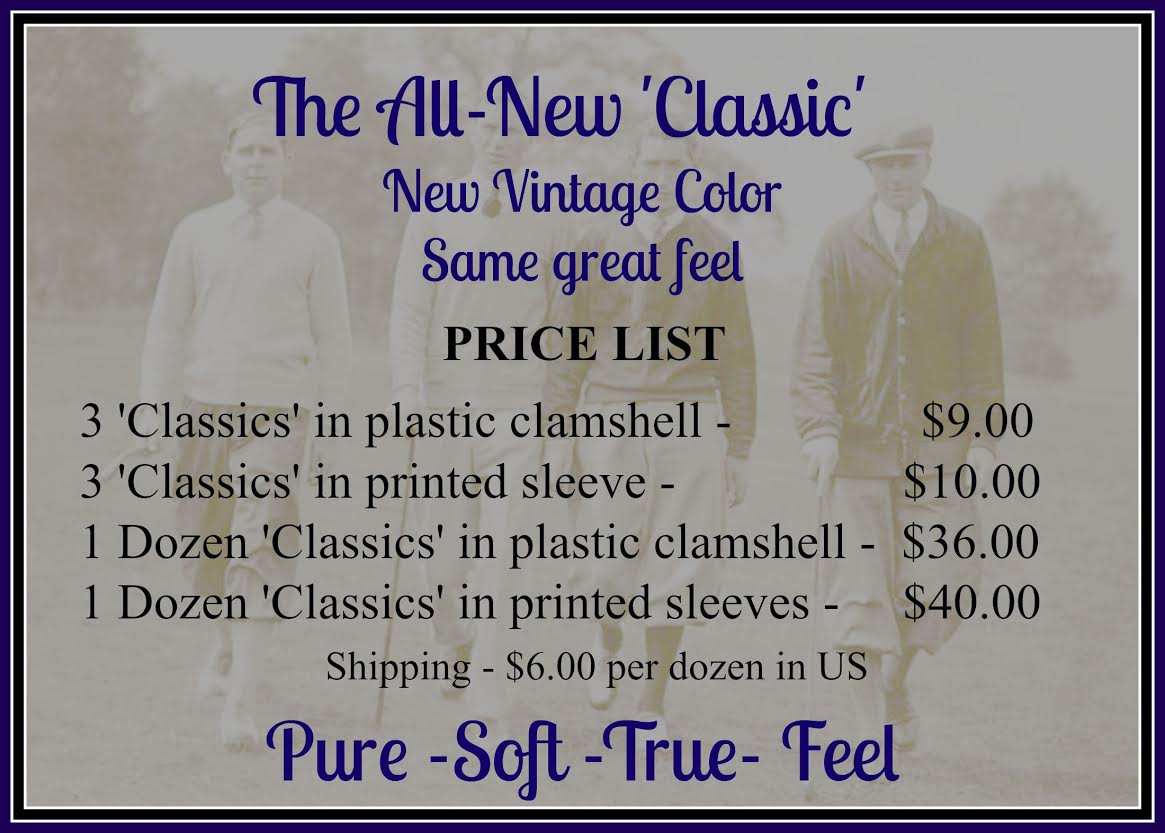 Jeremy Moe, winner of numerous hickory titles including the US Hickory Open and World Hickory Match Play Championship, recently declared the CLASSIC to be “my ball of choice for hickory play.” The CLASSIC has also been approved for play with the Metropolitan Hickory Society, the Florida Hickory Golfers, and the PHGA Tartan Tour, as well as at the World Hickory Match Play Championship. Many other regional and national groups are checking it out.