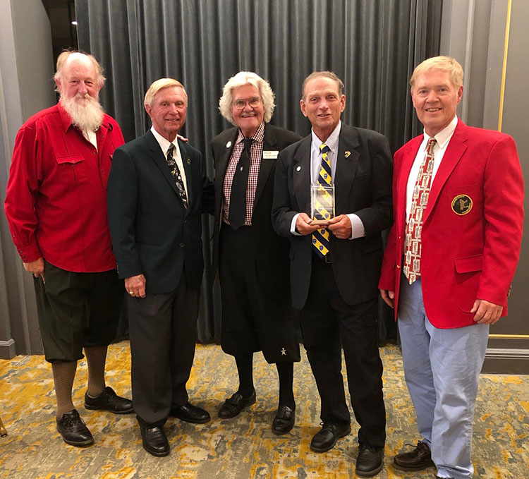 Mike Stevens, Captain of the Florida Hickory Golfers, was one of five new inductees welcomed to the Nebraska Hickory Golf Association Hall of Fame at the 2020 U.S. Hickory Open. The presentation was made at the USHO dinner on Monday night, Oct. 5.