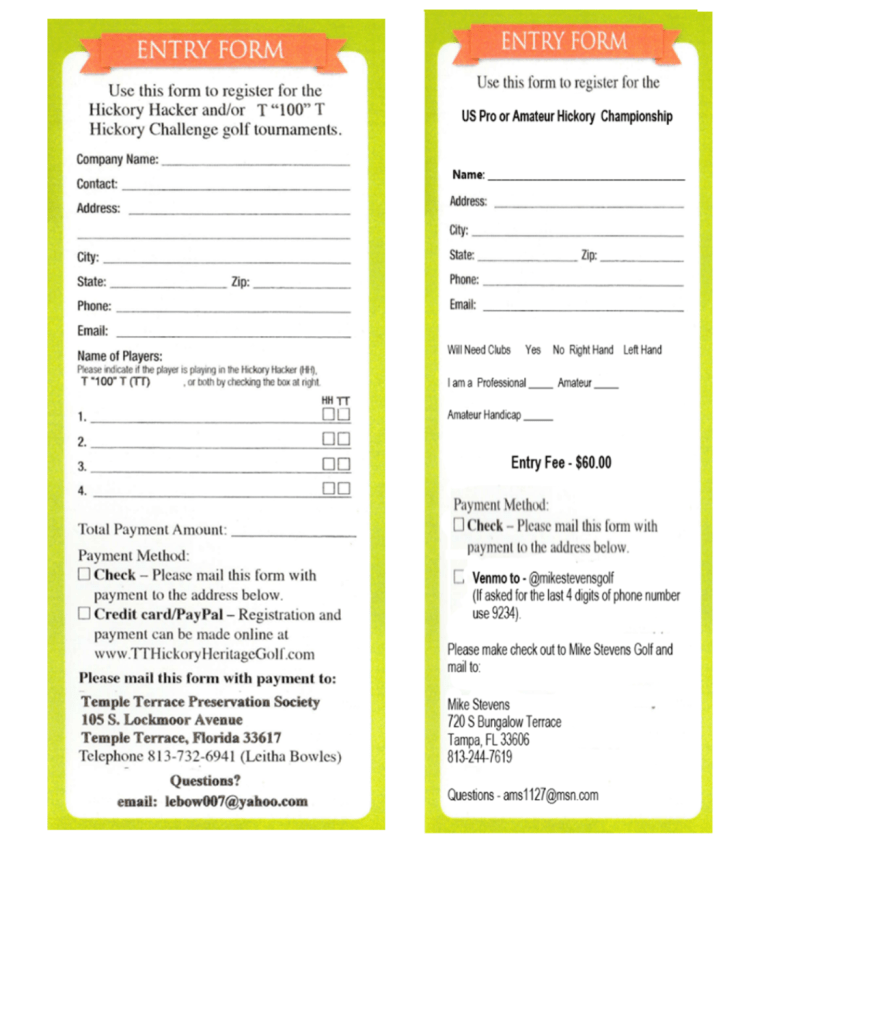 The 13th playing of the championships at Temple Terrace Golf & Country Club. There are 3 divisions, Professional, Scratch Amateur and Net Amateur. Recap of last year’s results and previous tournaments can be seen at www.usprohickory.com.