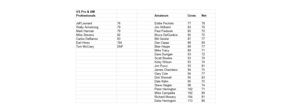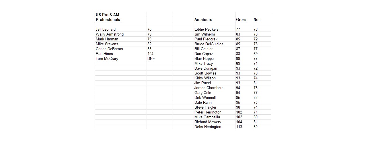 Results from the 13th US Professional and Amateur Hickory Golf Championships. Fantastic weather greeted us at historic Temple Terrace Golf & Country Club. Jeff Leonard topped the professionals with a fine 76. Eddie Peckels wins the Amateur crown with 78. Temple Terrace member Dan Capaz recorded a net 69 to win the Heritage trophy.